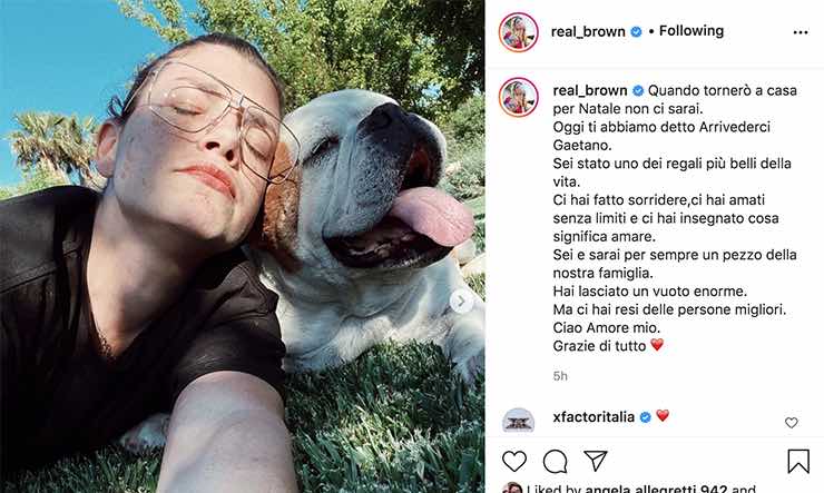 “Quando tornerò a casa per Natale non ci sarai. Oggi ti abbiamo detto Arrivederci Gaetano. Sei stato uno dei regali più belli della vita. Ci hai fatto sorridere,ci hai amati senza limiti e ci hai insegnato cosa significa amare. Sei e sarai per sempre un pezzo della nostra famiglia. Hai lasciato un vuoto enorme. Ma ci hai resi delle persone migliori. Ciao Amore mio. Grazie di tutto ❤️”