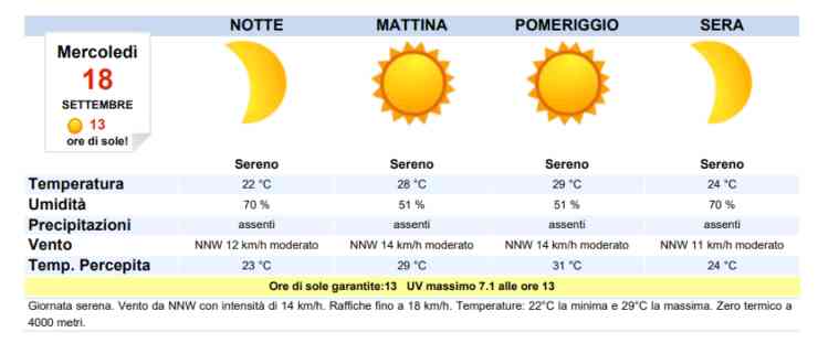 Clicca qui Meteo Italia oggi mercoledì 18 settembre