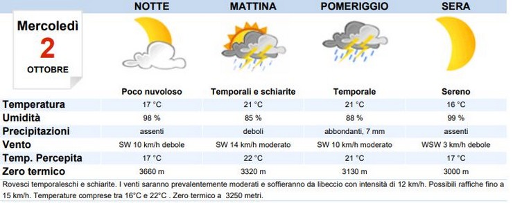 Clicca QUI meteo mercoledì 2 ottobre Italia