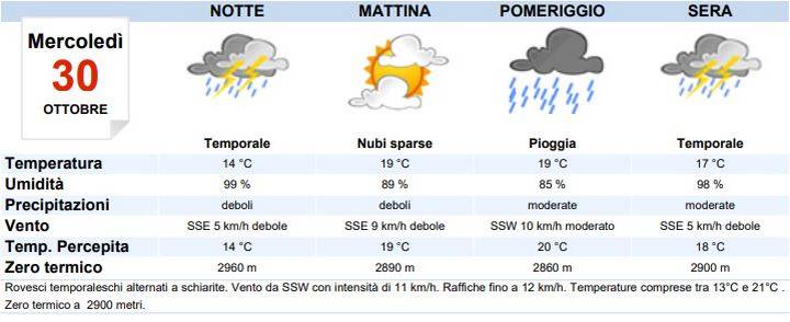 Clicca QUI meteo mercoledì 30ottobre Italia