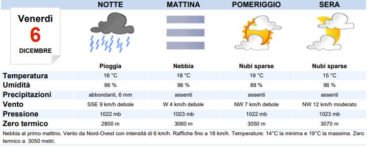 Clicca qui Meteo Italia venerdì 6 dicembre