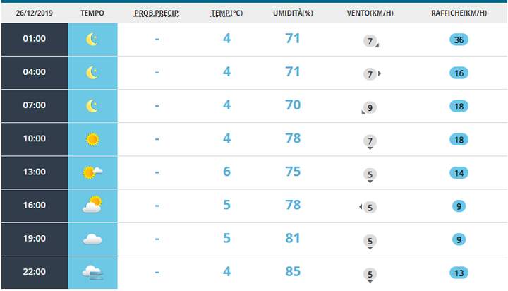 Clicca qui Meteo Italia giovedì 26 dicembre