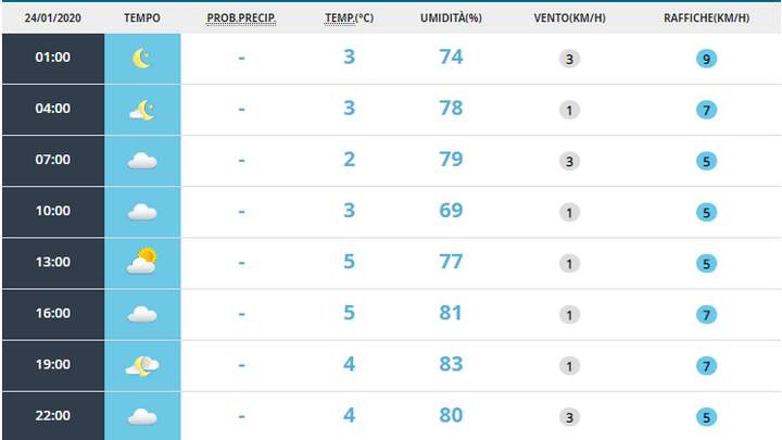 Fonte Previsioni del Tempo : Aeronautica Militare Italiana e Ministero della Difesa