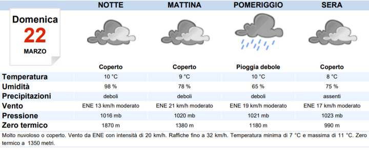 Segnaliamo che la nostra redazione Meteo, effettua l’aggiornamento delle previsioni meteo dettagliate ogni ora per i prossimi giorni in Italia e nelle zone locali.