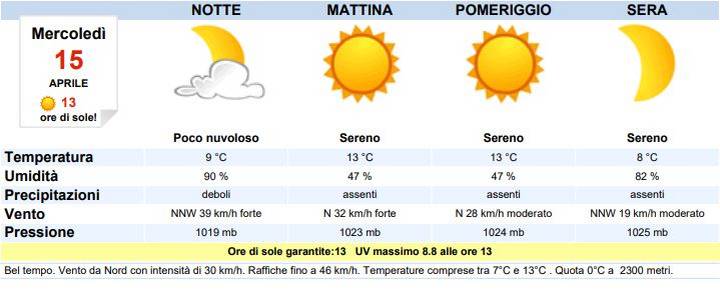 Clicca QUI meteo mercoledì 15 aprile Italia