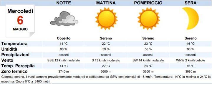 Clicca QUI meteo mercoledì 6 maggio Italia