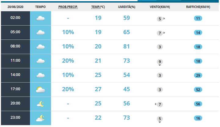 Segnaliamo che la nostra redazione Meteo, effettua l’aggiornamento delle previsioni meteo dettagliate ogni ora per i prossimi giorni in Italia e nelle zone locali.