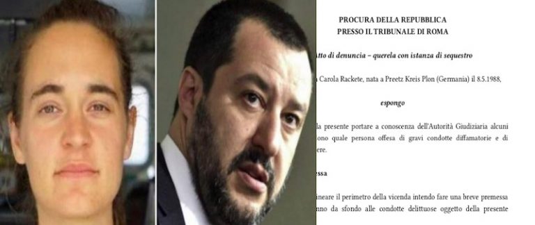 La Comandante di Sea Watch 3, Carola Rackete ha presentato alla Procura di Roma una querela contro il Ministro dell’Interno Matteo Salvini per «diffamazione aggravata» e «istigazione a delinquere». L’iniziativa è stata intrapresa mediate una testo di 14 pagine redatto dall’Avvocato Alessandro Gamberini a seguito delle polemiche seguite al recupero di migranti in acque libiche da parte dell’imbarcazione e la successiva decisione di approdare nel porto di Lampedusa.
