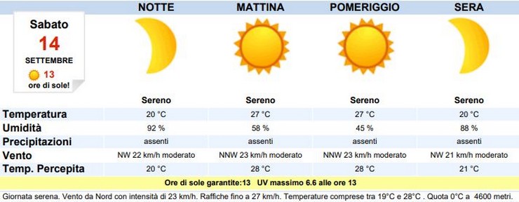 Segnaliamo che la nostra redazione Meteo, effettua l’aggiornamento delle previsioni meteo dettagliate ogni ora per i prossimi giorni in Italia e nelle zone locali.