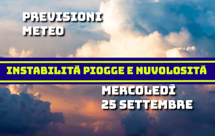 Le previsioni meteo per la giornata di domani mercoledì 25 settembre, sono all’insegna del tempo instabile e le temperature in diminuzione. Ecco le analisi della nuvolosità, temperature venti e mari.
