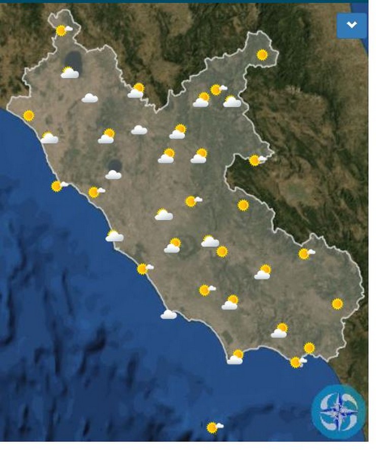 In provincia di Roma: Al mattino Nubi sparse con ampie schiarite, al pomeriggio Nubi sparse con ampie schiarite, la sera Nubi sparse con ampie schiarite, la notte Nubi sparse con ampie schiarite.