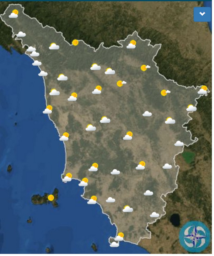 In provincia di Prato Al mattino Nebbie o nubi basse con qualche schiarita, al pomeriggio Nubi sparse con ampie schiarite, la sera Sereno o poco nuvoloso, la notte Nuvoloso con locali aperture.