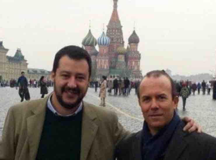 Fa le sue prime esperienze politiche in gruppi di estrema destra, in particolare con il gruppo Orion. Nel 1991 diventa un tesserato della Lega. Fedelissimo di Bossi prima e di Maroni poi, grazie al giornalismo conosce Matteo Salvini, con il quale intraprende un rapporto di amicizia. Rapporto che lo fa diventare suo portavoce nel 2013. Il giornalista, che si era trasferito in Russia per amore da qualche anno, torna in Italia e diventa il fulcro delle comunicazioni tra la Lega e il Cremlino. Nel 2014 fonda l’Associazione Lombardia-Russia insieme ad un gruppo di persone vicine alla Lega e alla Russia con l’obbiettivo di migliorare le relazioni tra Italia e Russia e di diffondere le idee politiche russe nel nostro paese tramite l’organizzazione di eventi culturali.