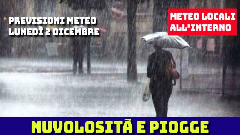 La settimana inizia con forte nuvolosità e maltempo. La protezione Civile ha emesso per alcune zone del centro-nord e nord Italia un allerta meteo arancione. Ecco le previsioni meteo di oggi lunedì 2 dicembre. Analisi della nuvolosità, temperature, venti e mari. Presenti anche i link per i meteo locali delle 25 città più popolose.