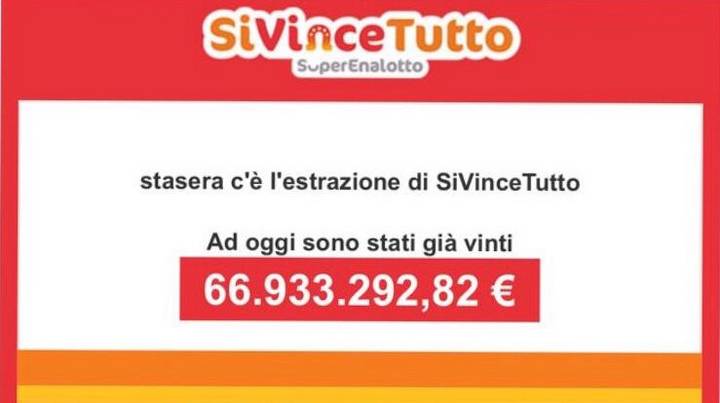 Dal lancio del gioco fino ad oggi, SiVinceTutto ha già premiato molti giocatori e distribuito vincite in tutta Italia per oltre 63 milioni di Euro. Con SiVinceTutto il montepremi viene assegnato in un’unica sera: si vince con 6 ma anche con 5,4,3 e 2 punti perché, in assenza di 6, il montepremi viene distribuito fra le altre categorie di gioco.