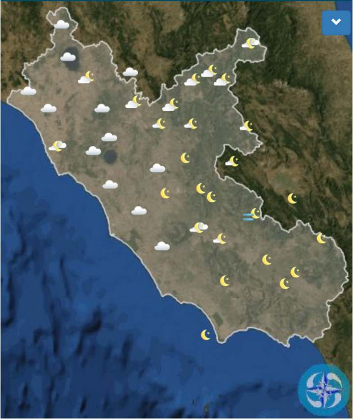 In provincia di Latina: al mattino Nuvoloso con locali aperture, al pomeriggio Nuvoloso con locali aperture, la sera Coperto con pioggia debole intermittente, la notte Coperto con rovesci intermittenti.