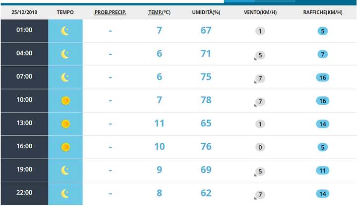 Fonte Previsioni del Tempo : Aeronautica Militare Italiana e Ministero della Difesa
