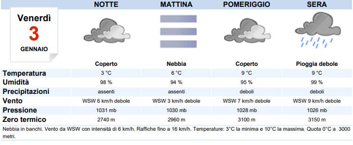 Clicca qui Meteo Italia venerdì 3 gennaio