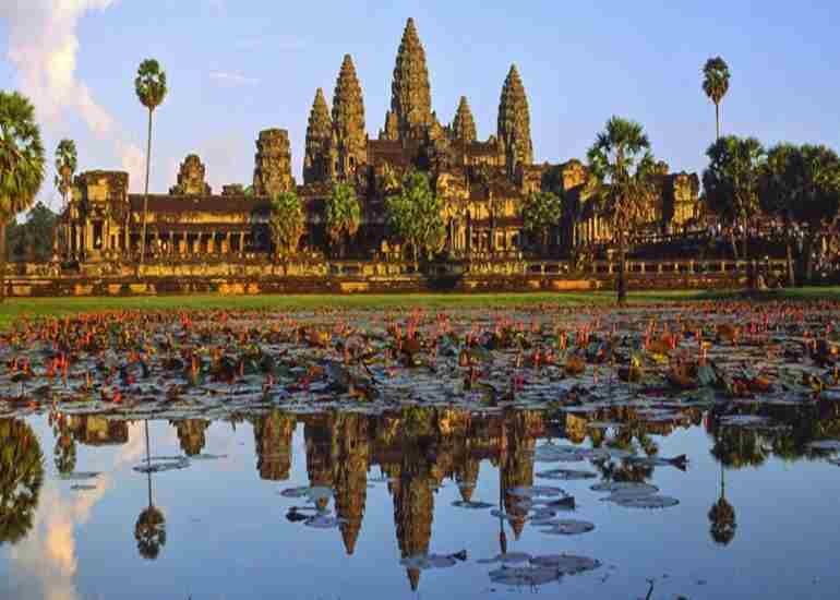 Nella Cambogia buddhista si trova il Tempio di Angkor Wat. Rappresentazione del paradiso in terra, eretto con blocchi di arenaria e decorato con bassorilievi, fu costruito dalla civiltà hindu. Anche se il sud-est asiatico p tempestato d grandi templi, l’Angkor Wat è il più monumentale.