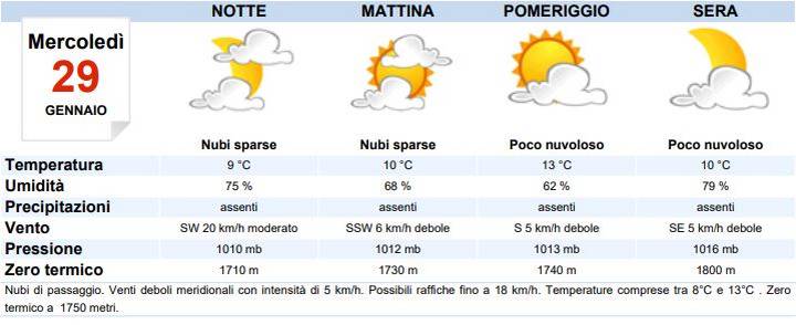 Clicca QUI meteo mercoledì 29 gennaio Italia