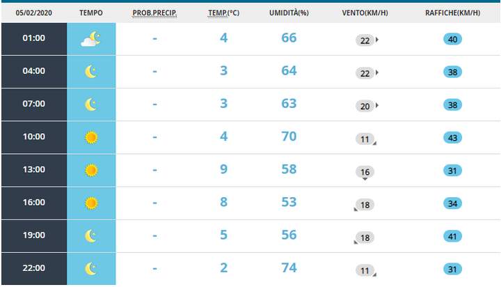Fonte Previsioni del Tempo : Aeronautica Militare Italiana e Ministero della Difesa