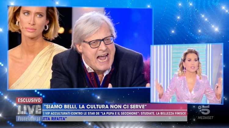 Una serata di leggerezza e di puro divertimento si è tramutata in una fortissima lite tra il critico d’arte e Barbara D’Urso. Lei invita Sgarbi ad abbandonare lo studio, lui mantiene la sua postazione sbeffeggiando la conduttrice.