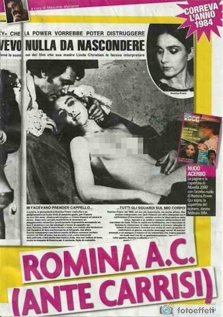 Dal passato è infatti emersa una foto in cui la meravigliosa cantante appare senza veli in posa per un servizio fotografico sul set di un film che stava girando. Era il 1984 e Romina era nel pieno della sua gioventù e bellezza. (Continua dopo la foto)