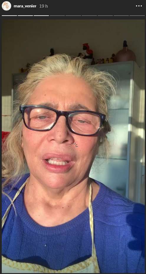 Mara Venier in versione casalinga si rivolge ai suoi follower mentre si accinge a preparare la parmigiana. La conduttrice di Domenica In appare senza trucco..