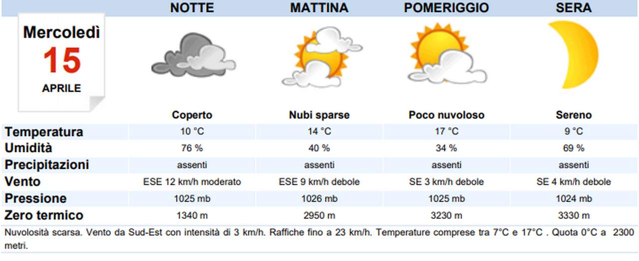 Clicca qui Meteo Italia mercoledì 15 aprile