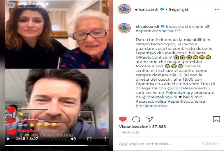 “Dato che è rinomata la mia abilità in campo tecnologico, vi invito a guardare cosa ho combinato durante l’aperitivo di lunedì con il brillante Paolo Conticini? Attenzione che magari potrebbe toccare a voi! Se ve la sentite di rischiare vi aspetto come sempre domani alle 12.00 con la diretta dei cuochi, alle 19.00 con l’aperitivo tra amici e non vedo l’ora di collegarmi con @gigidalessioreal! Ci sarà anche un #bloodymary preparato da @lorenzolinguini ♥️ bello mio!”, questo il messaggio di corredo all’esilarante diretta riproposta sul suo profilo ufficiale Instagram, da lei stessa sapientemente gestito.