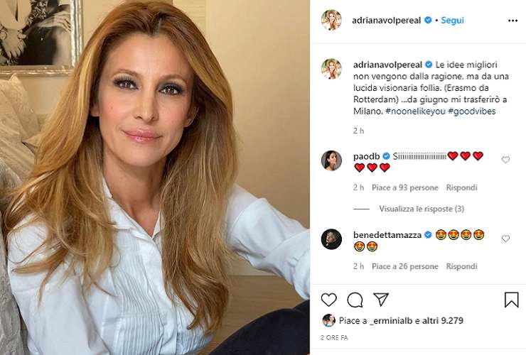Adriana Volpe non vuole fermarsi e si regala un annuncio importante sul proprio profilo Instagram.
