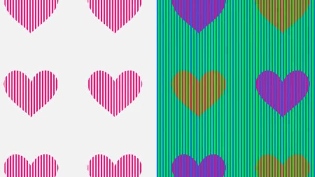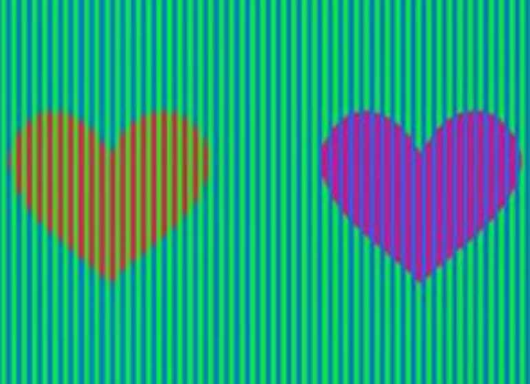 Questa particolare illusione ottica ingennerà il tuo apparato visivo: di che colore vedi i vari cuori? Leggi e scopri di che tipo di illusione si tratta…