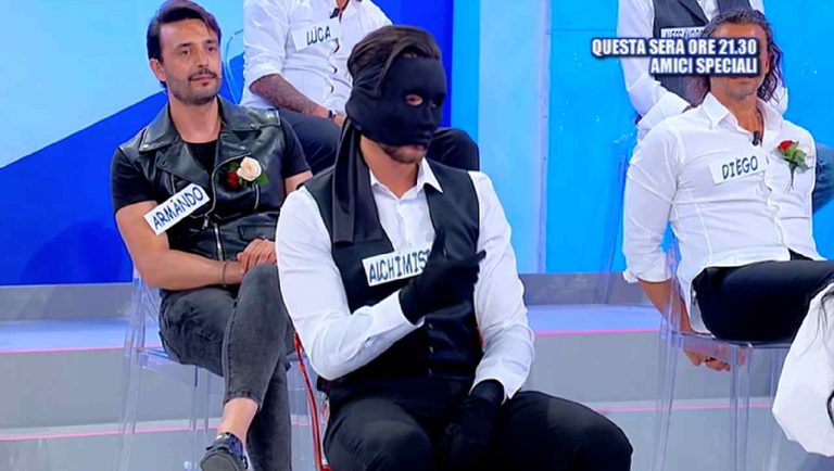 Durante la puntata che vedremo andare in onda oggi infatti, oltre a Sammy e a Alessandro, scenderà dalle scale anche l’Alchimista ma questa volta senza niente sul volto. Un gesto che ha lasciato l’intero studio spiazzato che non ha potuto non fare i complimenti per la bellezza del corteggiatore.