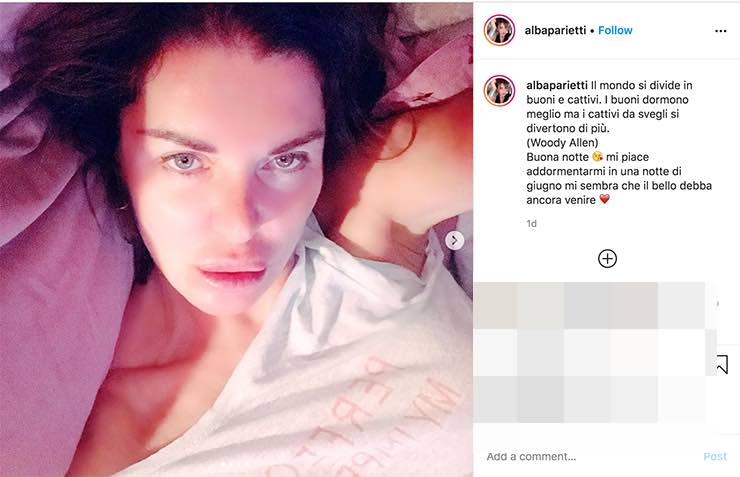 Ma quello che si nota nel messaggio di Alba, oltre alla poetica citazione e alle sensazioni evocate, è la foto postata dalla conduttrice, che la ritrae senza trucco, come i follower non mancano di evidenziare, riempiendola di complimenti. “Alba, lo ripeterò 100 volte ma senza trucco sei bella da guardarti per ore. Ma tanto. Ma proprio tanto. Ma tanto tanto tanto“, le scrive un fan, mentre un’ammiratrice è ancora più precisa: “L’intensità del tuo viso mentre forse hai già sonno, senza trucco…così naturale, con una espressione quasi infantile..da donna a donna contenta di vederti splendere..con affetto“.