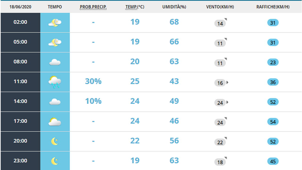 Clicca qui Meteo venerdì 19 giugno a Parma