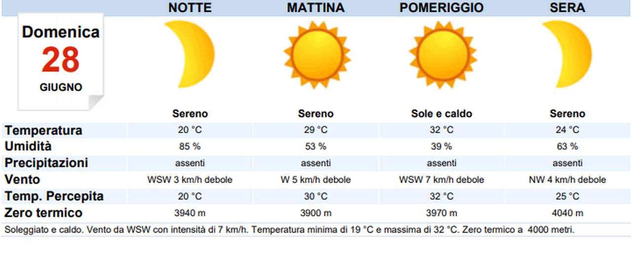 Clicca qui Meteo Italia domenica 28 giugno