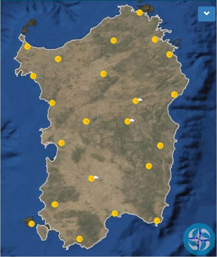 In provincia di Sassari: nessuna novità significativa nello scenario meteorologico a scala sinottica: il promontorio subtropicale determina la persistenza di condizioni di tempo stabile e soleggiato in Sardegna, in un contesto termico da estate inoltrata per effetto dell’afflusso di torride correnti nordafricane. Temperature in ulteriore rialzo: caldo intenso su Campidano e Iglesiente con picchi fino ai 35-37°C sulla Piana del Cixerri. Venti deboli o moderati, a prevalente regime di brezze e in locale intensificazione nelle ore centrali del giorno. Mari poco mossi sotto costa, a tratti mossi a largo.