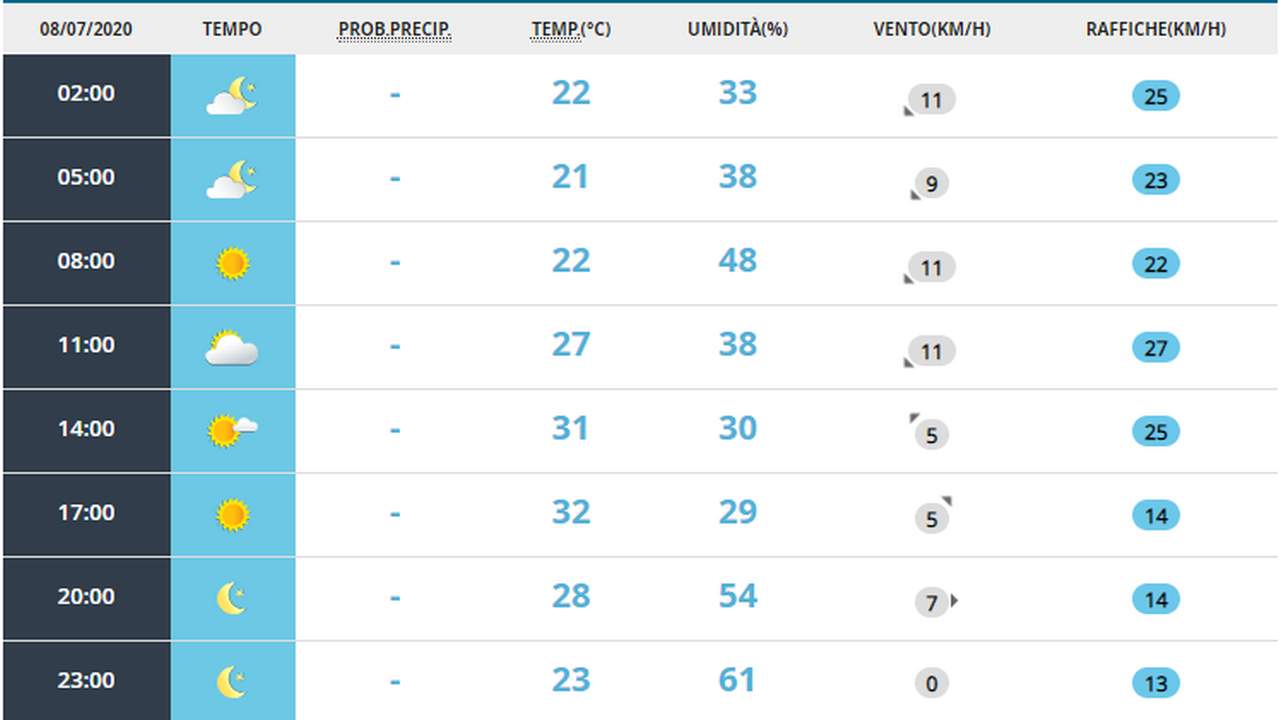 Clicca qui Meteo giovedì 9 luglio a Prato
