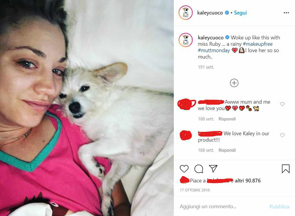 Non per nulla sul suo profilo ufficiale Instagram, da lei stessa sapientemente gestito e, a dir poco seguitissimo, possiamo notare, tra i tantissimi selfie postati, uno in compagnia del suo dolcissimo amico peloso Ruby, con il quale sia è immortalata durante il momento del risveglio.