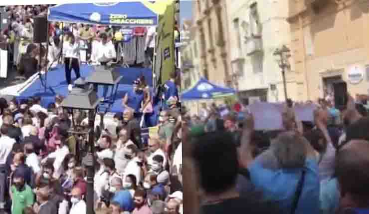 Matteo Salvini, dopo essere stato a Pompei, avrebbe dovuto visitare le aree mercatali di largo Santissimo e passeggiare in via Salvator Noto, ma le condizioni – è stato organizzato anche un corteo composto da almeno un centinaio di manifestanti partito da piazza Santa Croce – hanno consigliato ai responsabili del servizio d’ordine di puntare direttamente al gazebo dove erano presenti già gli attivisti locali.