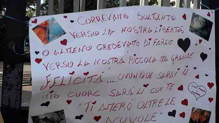 Fuori dalla chiesa dove tra poche ore si svolgerà il funerale di Maria Paola, è comparso il manifesto di Ciro. Sui manifesti funebri con l’annuncio della morte della giovane, anche il cordoglio del fratello Michele, arrestato con l’accusa di omicidio preterintenzionale.