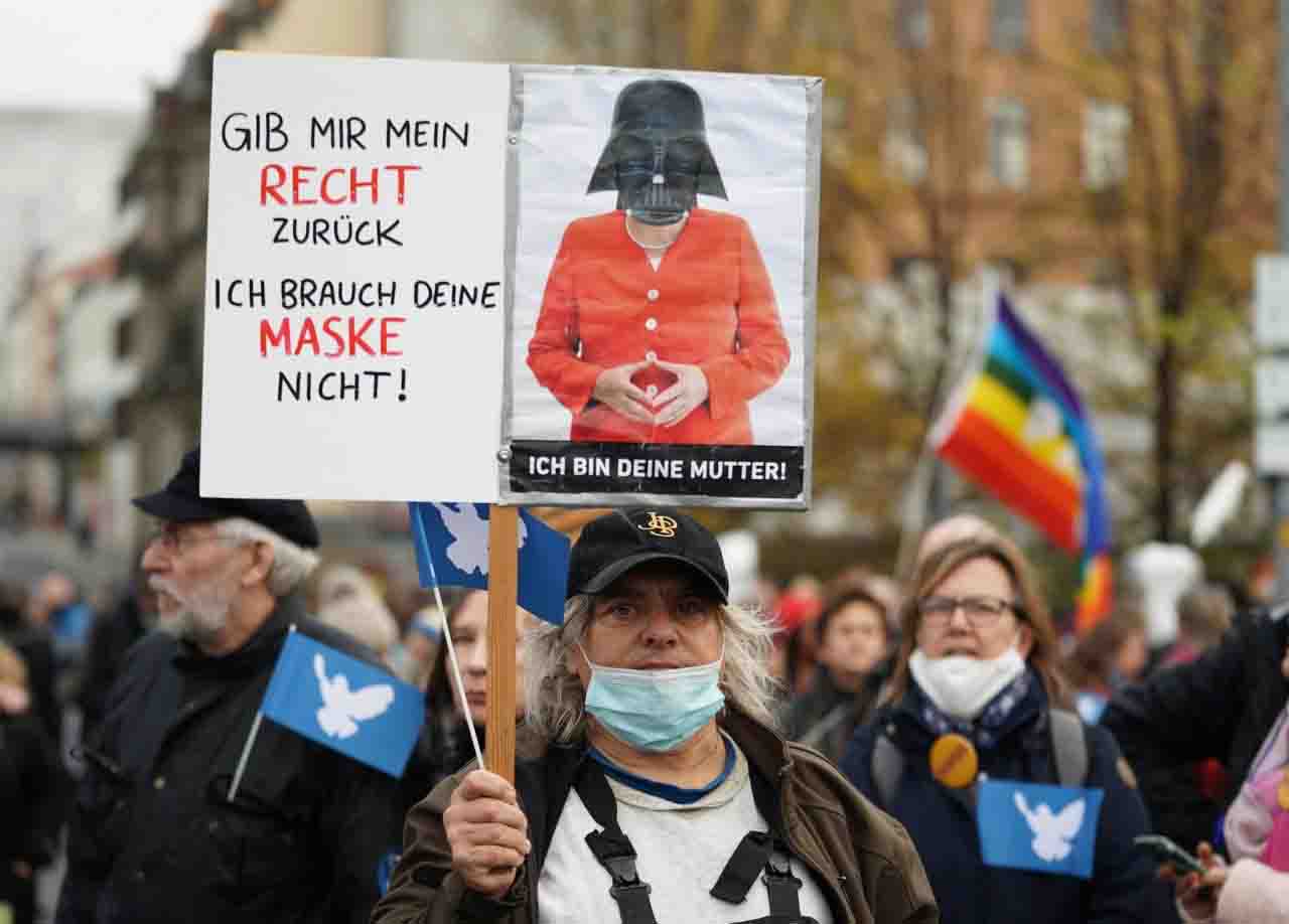 Migliaia di persone stanno manifestando a Berlino contro le politiche del governo sul Coronavirus. Molte non indossano la mascherina.