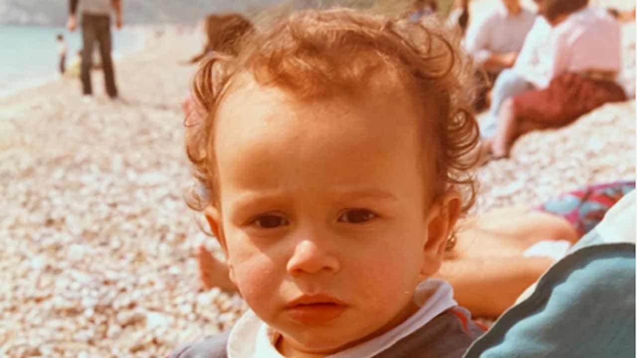 Un dolcissimo bambino con dei bellissimi capelli ricci con una spiaggia sullo sfondo: uno scatto vintage che immortala uno dei cantanti più amati della storia di Amici.
