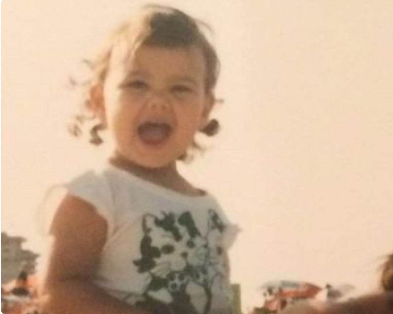 Scrive la conduttrice a corredo di uno scatto in cui appare piccina e sorridente sulle spalle di sua madre.