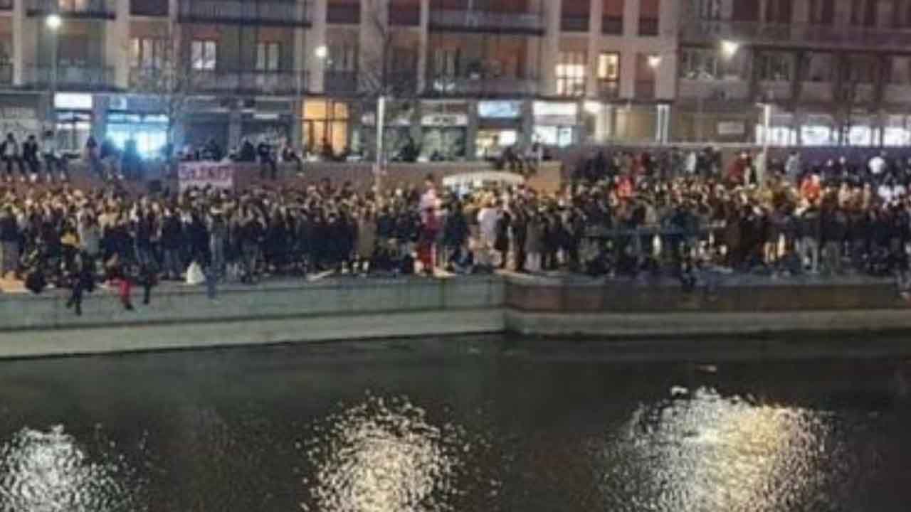 Uno scatto social dell'assembramento di giovanissimi in Darsena a Milano (Foto Metwoeek)