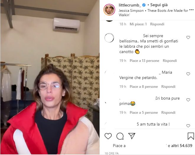“Bellissima, però le labbra lasciale stare”, ha commentato un utente. Oppure: “Sei sempre bellissima..Ma smetti di gonfiarti le labbra che poi sembri un canotto” e ancora: “Le labbra non e no! Perchè mai scambiare l’identità di un volto con la volgarità?”