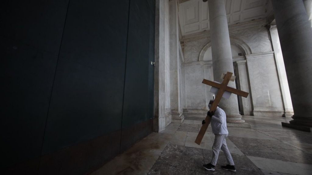 Vincenzo Staiano, pizzaiolo che fu scelto dal Papa durante il Giubileo straordinario della Misericordia per preparare le pizze in Vaticano, si è unito alla protesta organizzata da Confesercenti per chiedere di riaprire e ristori per i commercianti che sono in grave difficoltà. Staiano è titolare del ristorante “Zì Aniello” di Lettere (Sorrento). Durante la protesta, l’uomo ha portato una croce sulle spalle, che sta a simboleggiare le tasse, per poi posarla davanti alla Basilica di San Francesco di Paola a Napoli, mentre suonavano le campane che segnavano mezzogiorno. Quindi le croci che rappresentano le difficoltà dei commercianti in questi ultimi mesi. A Staiano hanno assegnato quella con l’insegna dell’Iva al posto della scritta Inri.