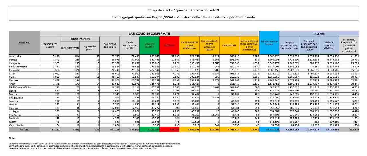 Il bollettino del ministero della Salute di oggi, 11 aprile, con i dati riguardanti l’epidemia di Covid-19 in Italia. Gli aggiornamenti dalle Regioni.