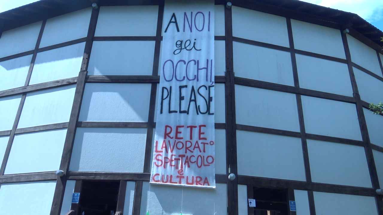 Parlando coi lavoratori presenti l’impressione è che ci sia voglia di tornare in scena, ma a condizione di una nuova consapevolezza dei propri diritti e del proprio ruolo. L’importante per il momento è che non si spengano i riflettori sui motivi di questa protesta: come recita lo striscione all’entrata del Globe che richiama il famoso spettacolo del suo storico direttore Gigi Proietti “A me gli occhi please”