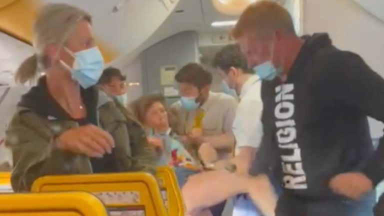Come si può notare nel video, il tutto è avvenuto tenendo la mascherina abbassata. Ma la protagonista del video non si è limitata ad insulti: sarebbe addirittura arrivata a sputare. La si vede tirare i capelli ad un’altra signora e urlare agli steward: «Non sai chi sono io» tirando calci e spintoni per allontanarli. Un vero e proprio delirio.